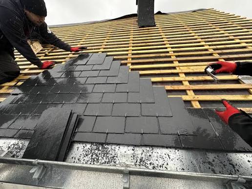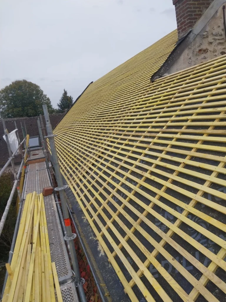 Installation précise de vos tuiles, ardoises ou bacacier par nos couvreurs qualifiés.